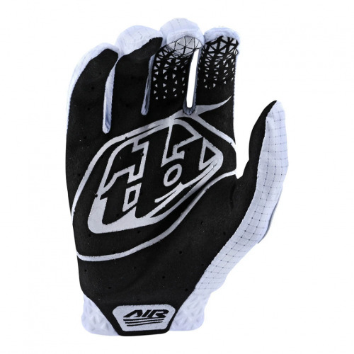 El Air Glove presenta un puño moldeado por compresión y una palma de una sola capa con orificios perforados con láser para mayor transpirabilidad. Micro malla se utiliza en todas partes para mayor ventilación. La impresión de silicona en el dedo ofrece un punto de agarre para el agarre de la palanca del freno.
