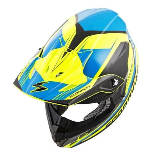 -La visera Aero-Tuned resistente a roturas incluida está diseñada para bloquear el sol deslumbrante y el refugio que se aproxima. La innovadora visera de tecnología de polímeros de Scorpion es extremadamente resistente y flexible.